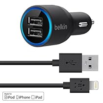 Belkin 2-Port Car Charger with Lightning to USB Cable for iPhone 5 / 5S, iPod touch, iPod nano, iPad and iPad mini, 2.1 AMP (Black)